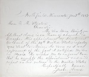 This letter was found in a “book mark” file associated with the soldier’s service record. In it, the soldier’s father writes on behalf of his son (who was unavailable) to the Secretary of War in order to accept the son’s appointment as Lt. Colonel.