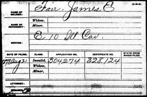 For instance, James E. Fair served in Co. E, 11th Illinois Cavalry. He lived until 1921 and his pension file does not identify his parents: