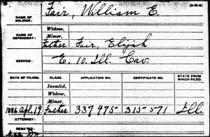 But his little brother, William, served in the same company and died during the war. Their father applied for benefits based on William’s service and was identified as Elijah Fair.
